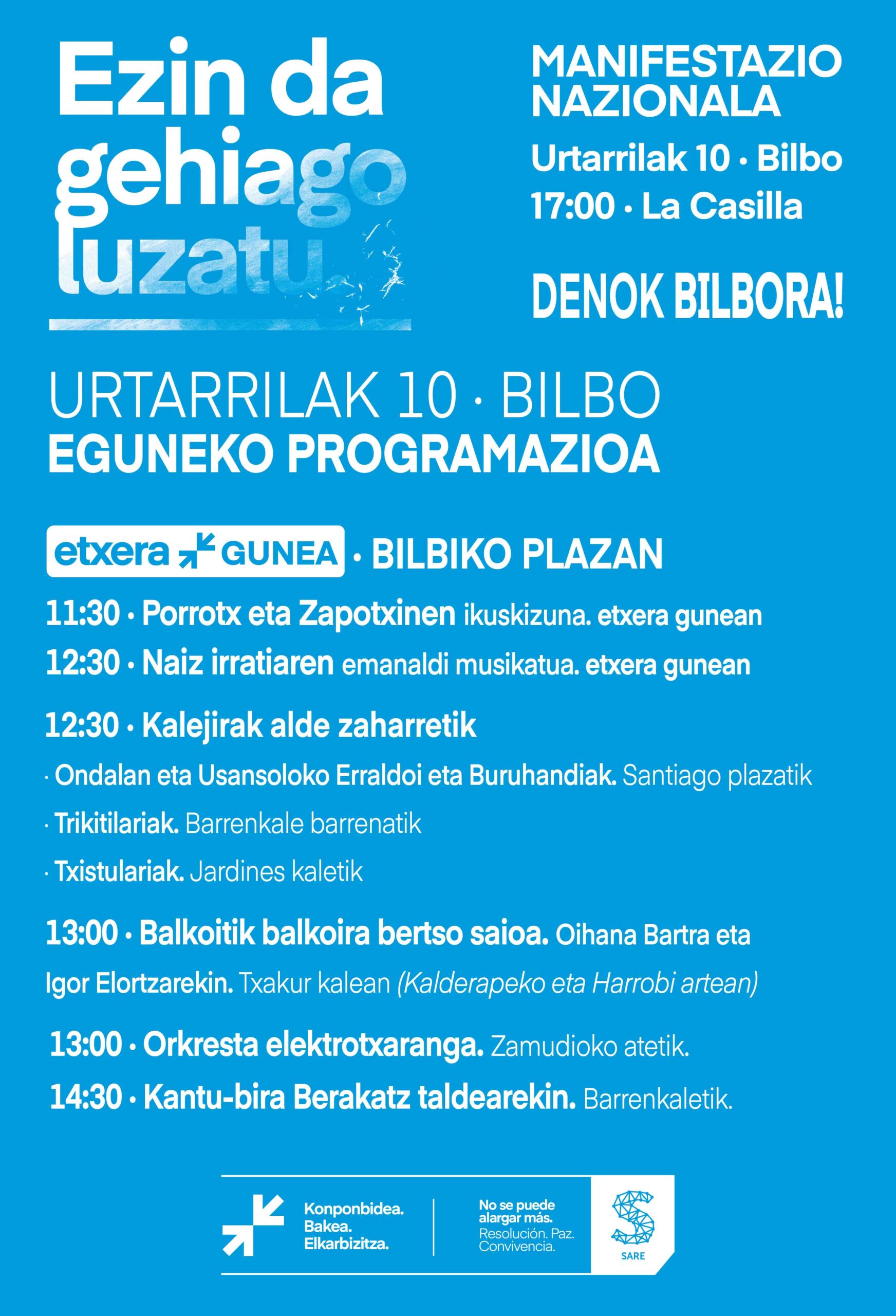 • Ondoren, SAREk (Joseba Azkarraga eta Bego Atxak) manifestazio honetarako prestatu duen manifestua irakurriko da.