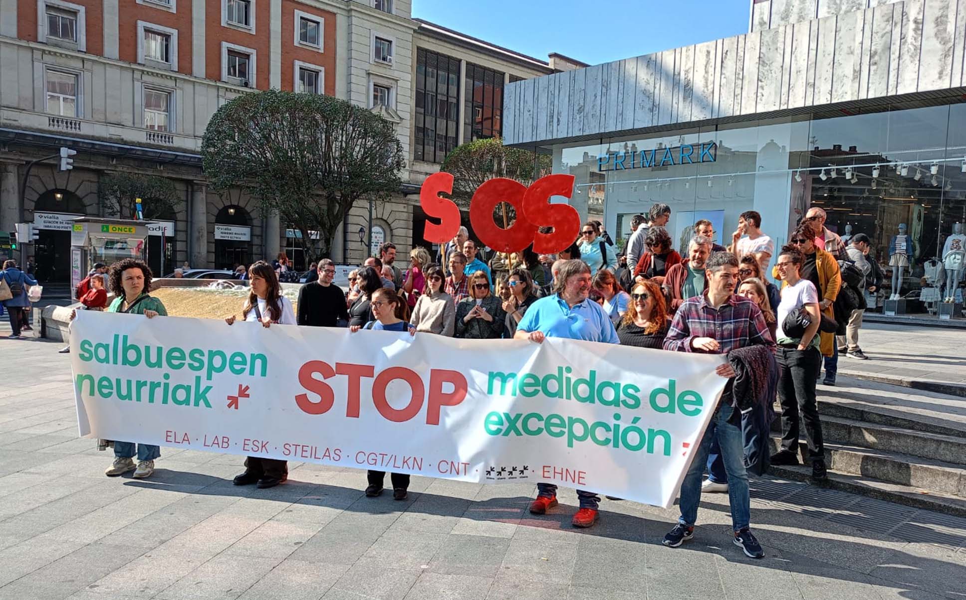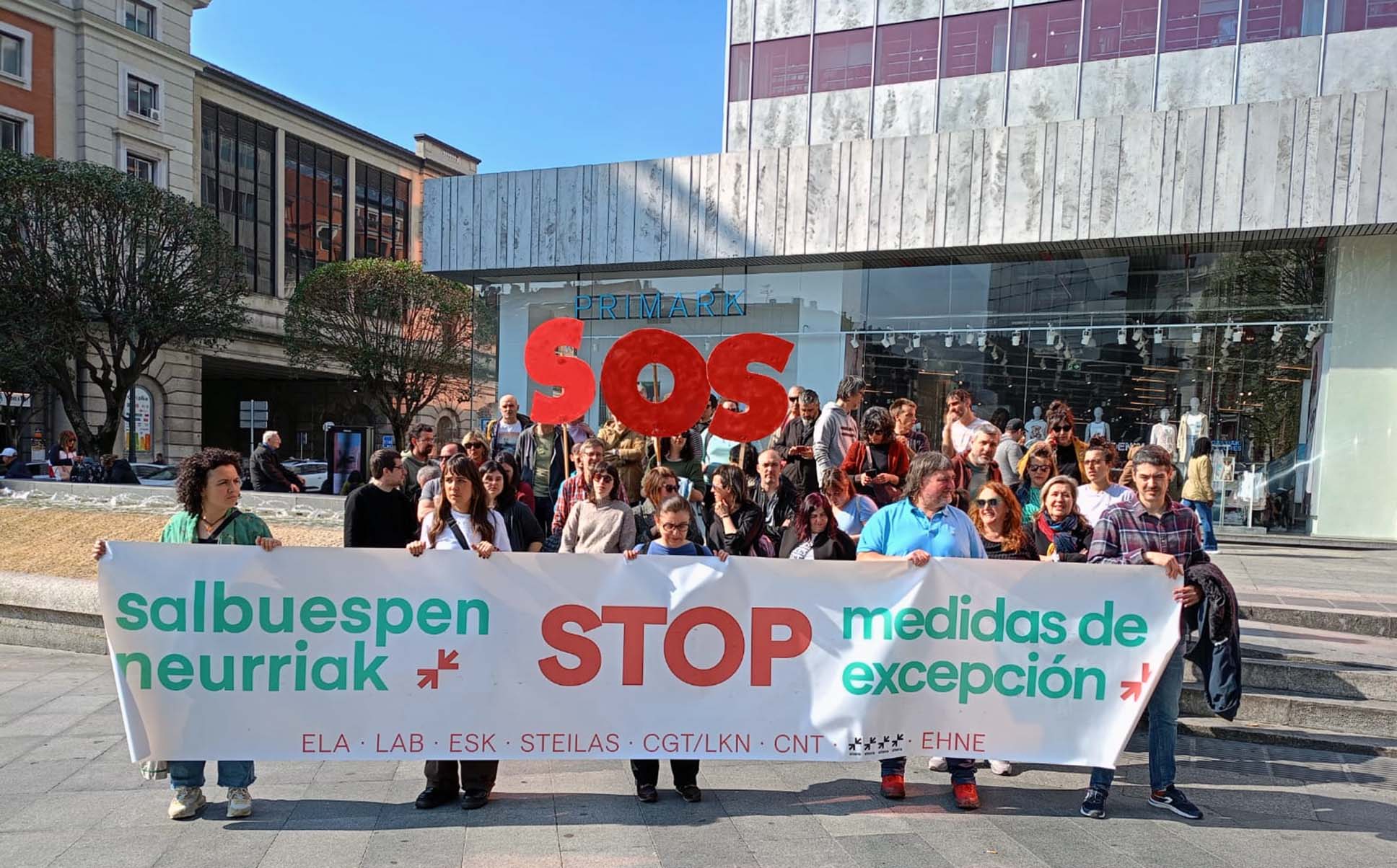 Hoy, los sindicatos ELA, LAB, ESK, STEILAS, CGT-LKN, CNT, HIRU, EHNE y ETXALDE nos concentramos en la Plaza Circular de Bilbao para mostrar nuestro respaldo y adhesión a la dinámica Gotzon SOS.
