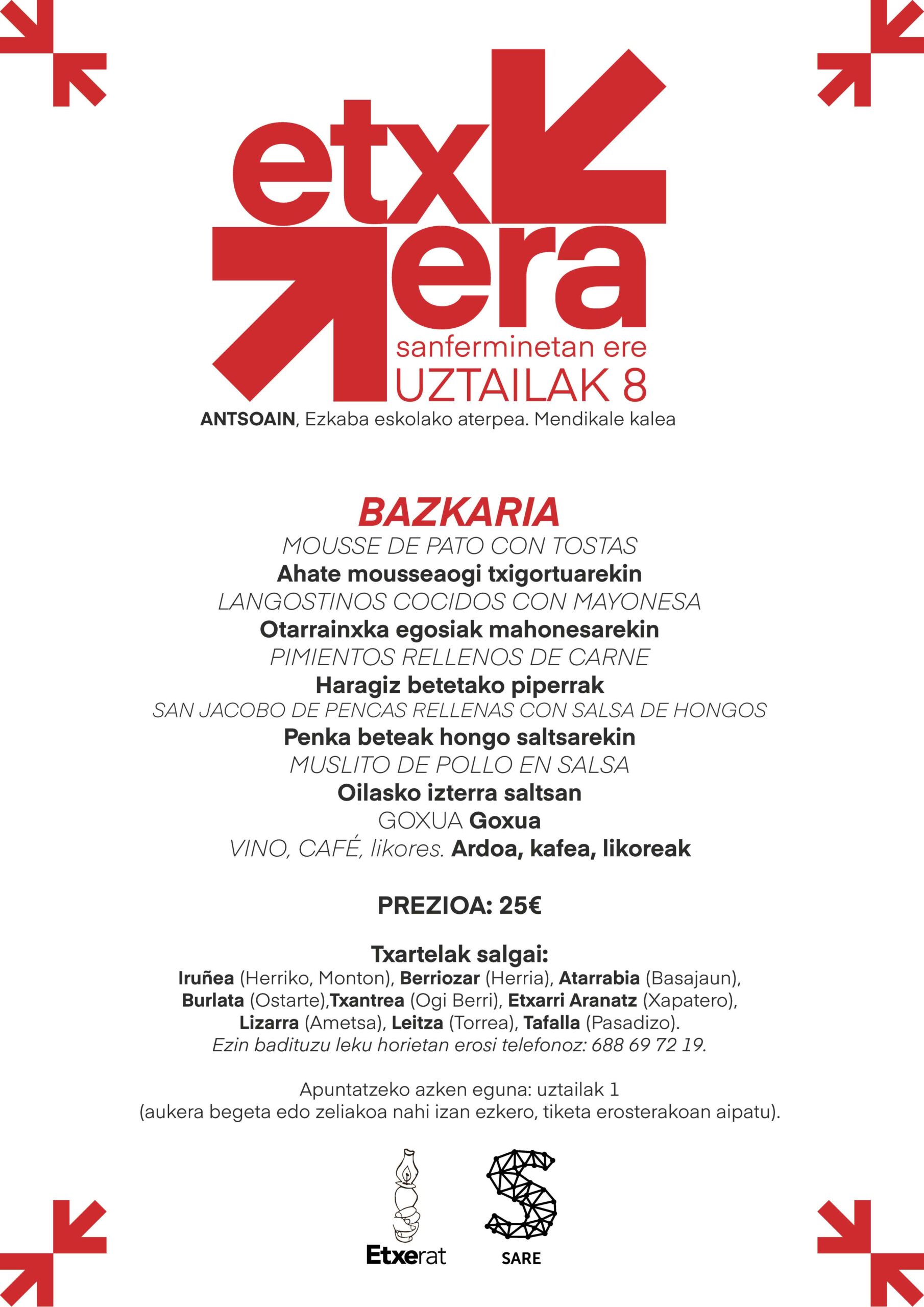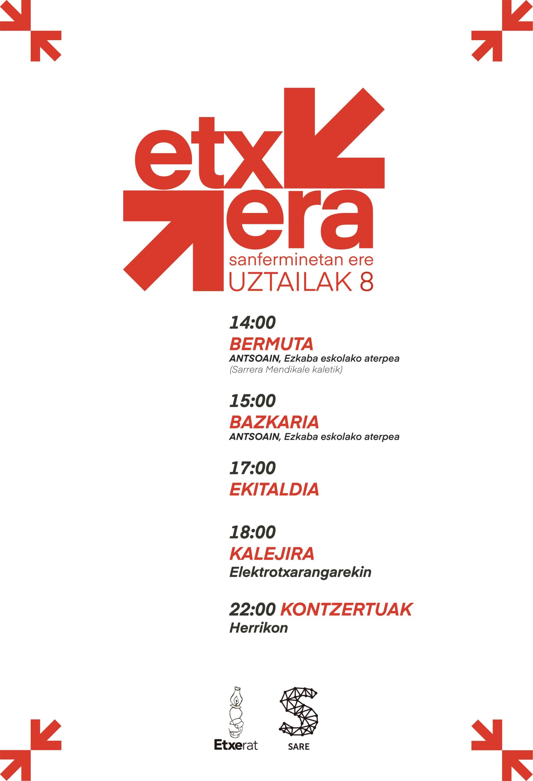 Además, el 8 de julio hemos organizado el Etxera Eguna de San Fermin, con un amplio programa. Comida popular, acto, kalejira con elektro txaranga y conciertos.