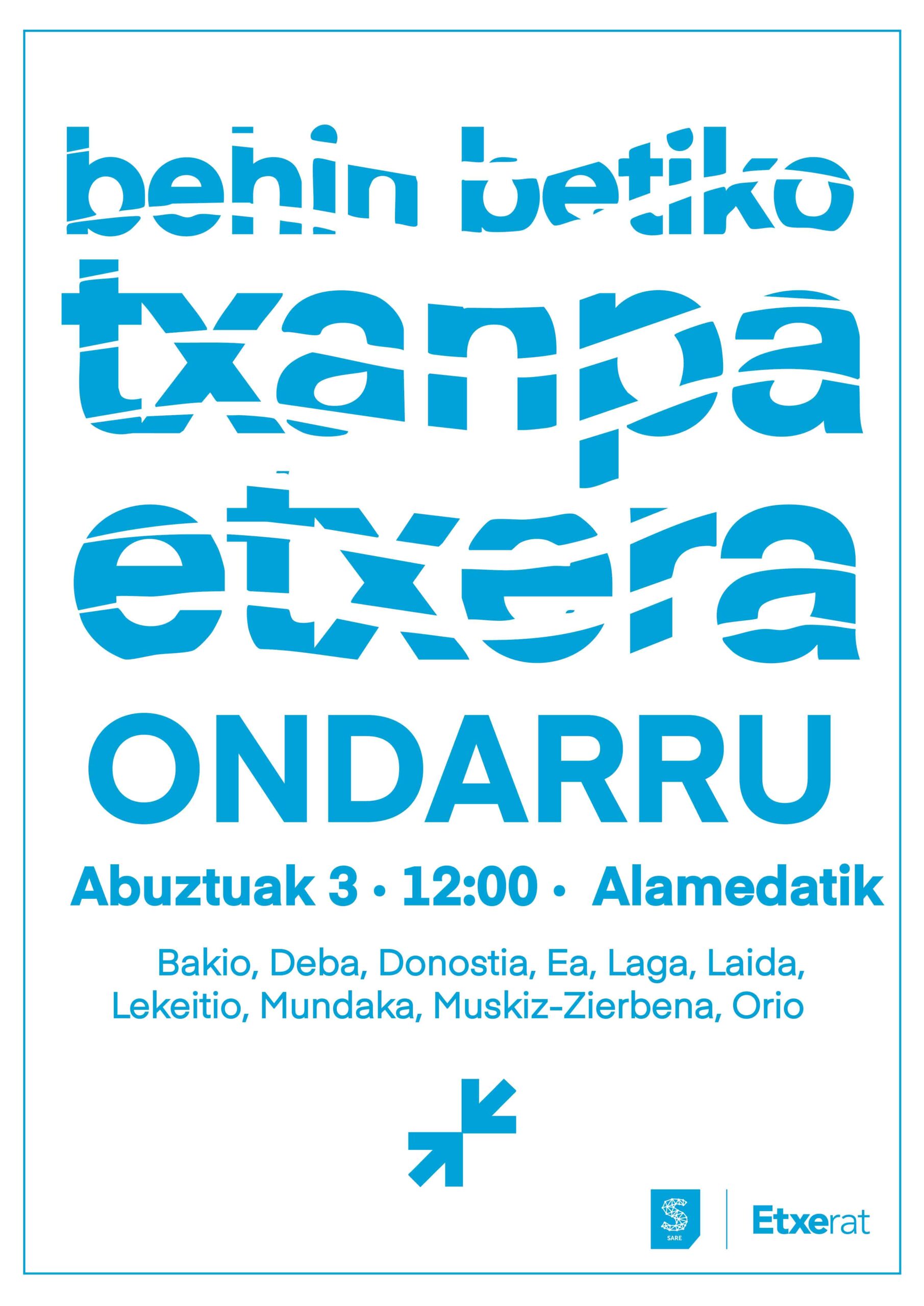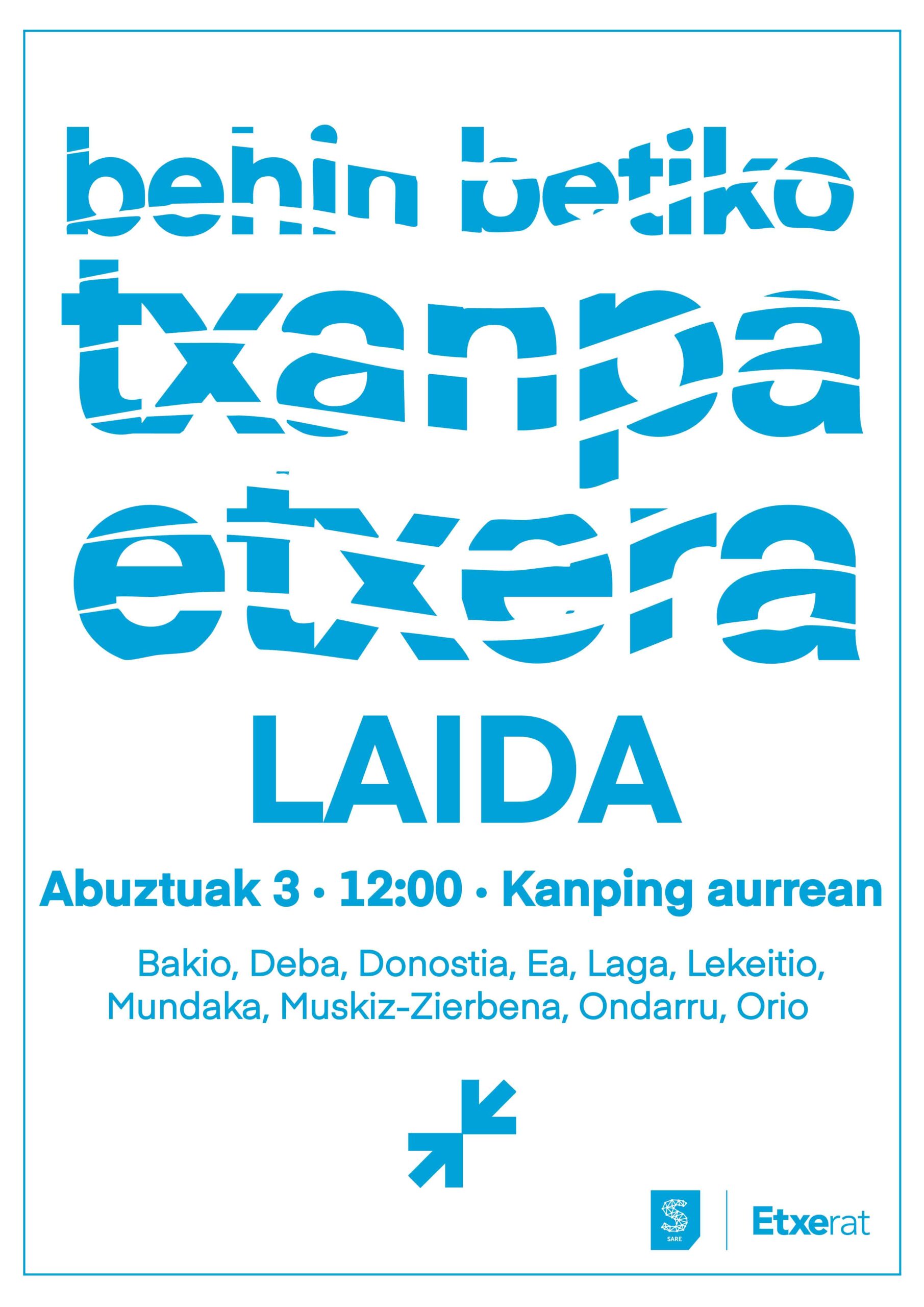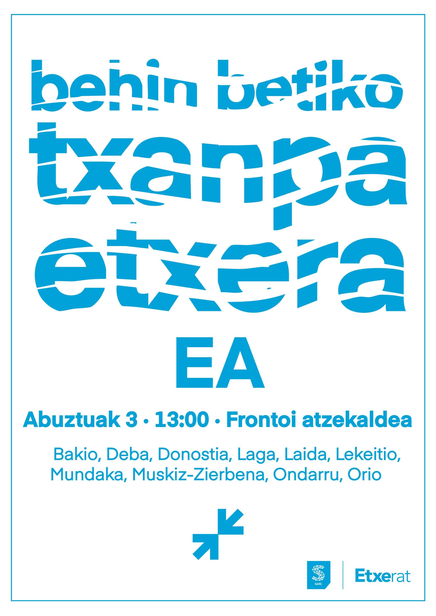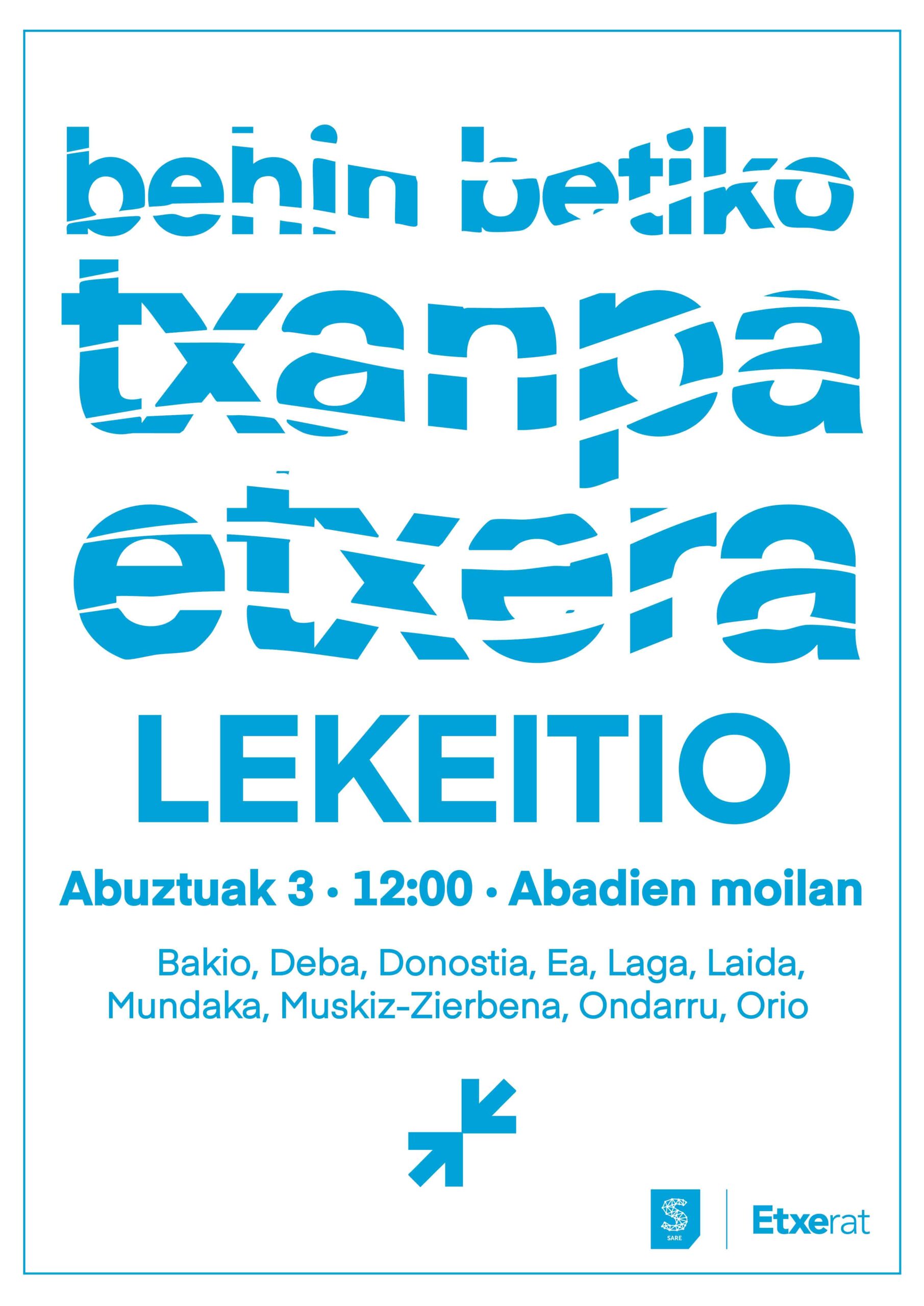 Aipatu gisan, Abuztuaren 3an urtero antolatu ohi ditugun mobilizazioak antolatuko ditugu Hego Euskal Herriko 11 hondartzetan “behin betiko txanpa etxera” izenpean. Eguerdiko 12:00k aldera, Bizkaian 8 hondartzetan eta Gipuzkoan 3 hondartzetan elkartuko gara euskal preso, iheslari eta deportatuen etxeratzearen aldeko aldarrian bat egin eta Euskal Herrian konponbidea, bakea eta elkarbizitza aldarrikatzeko.