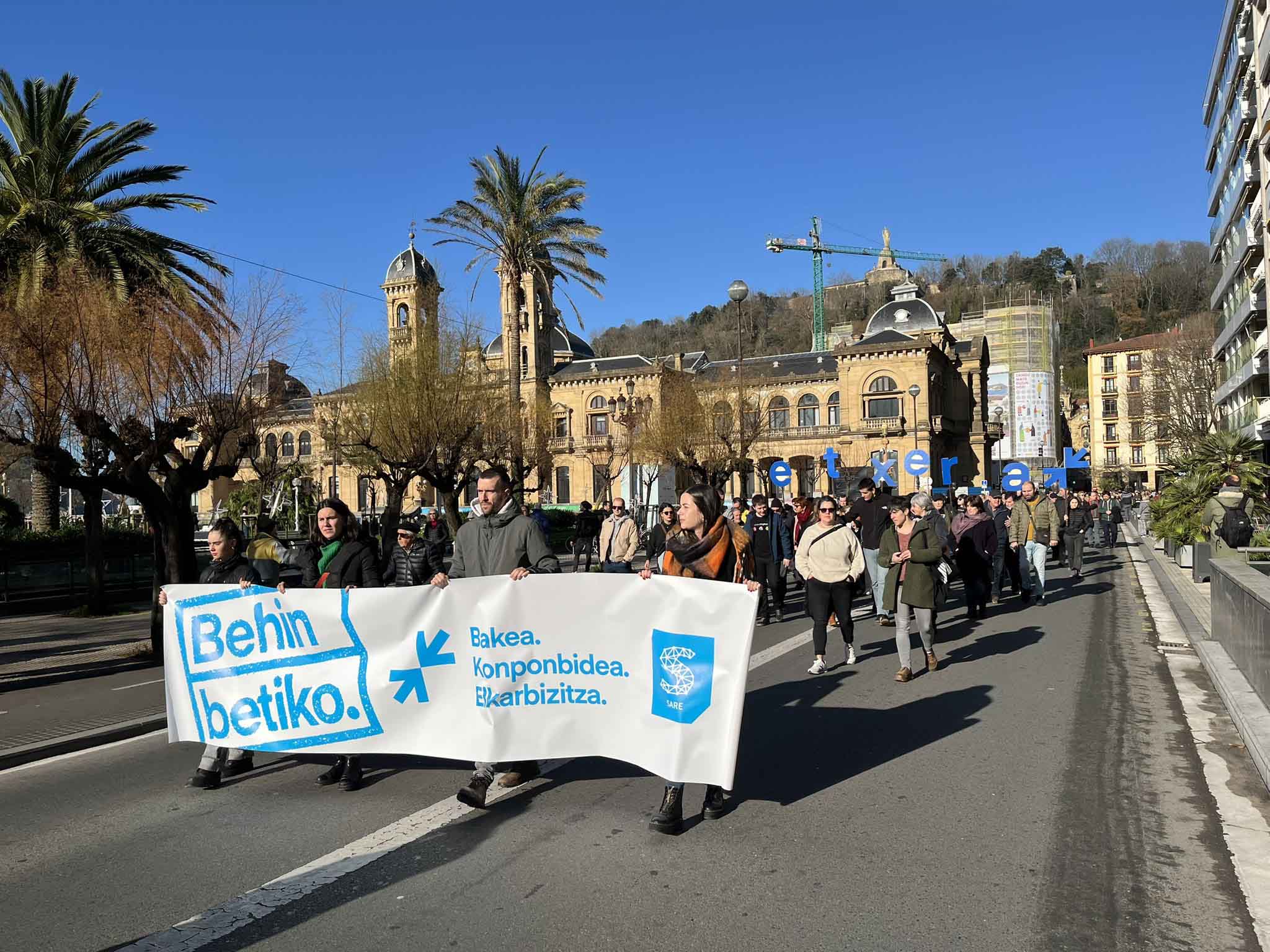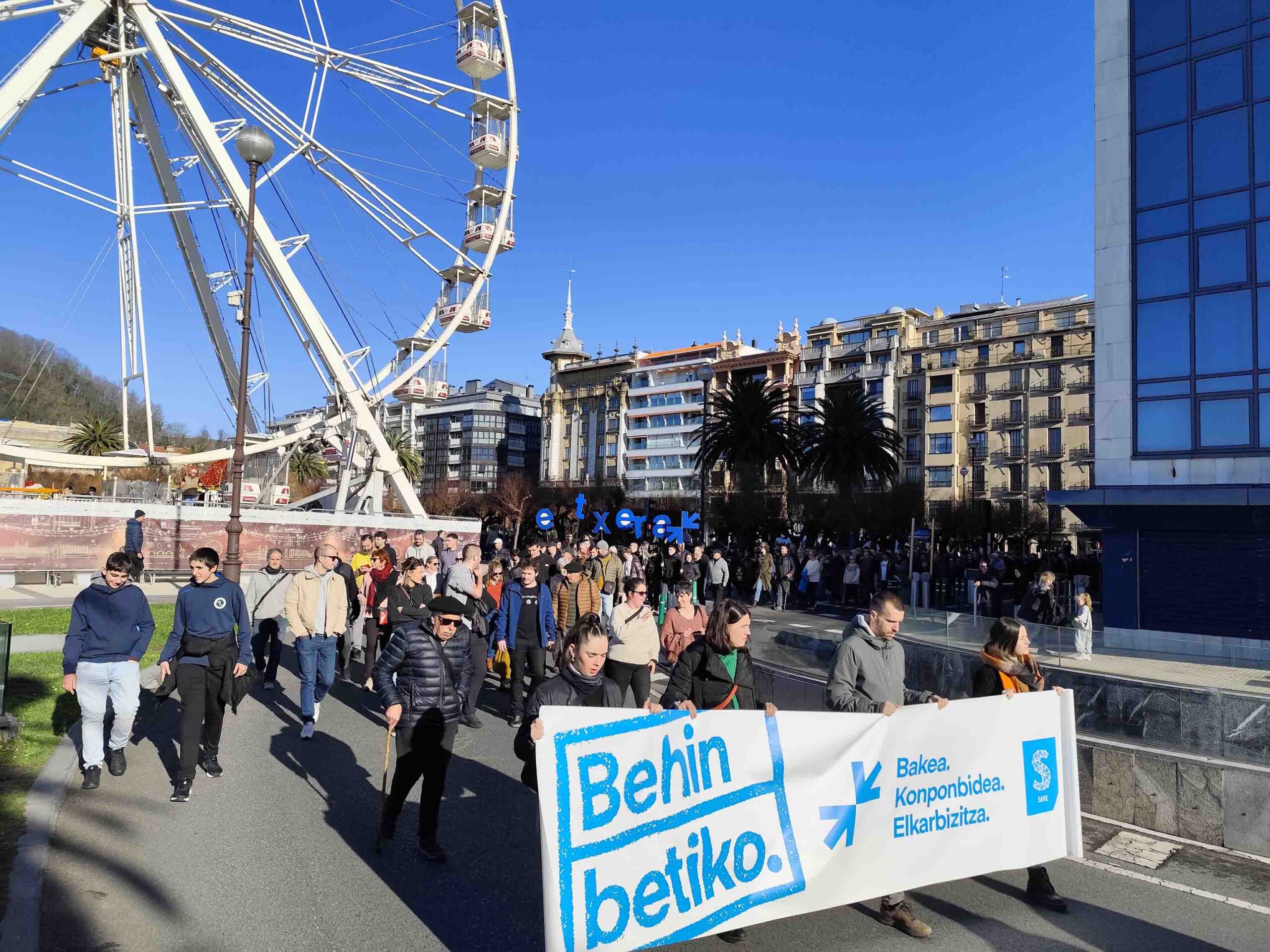 Horregatik eragile sozial eta politikoen, sindikatuen, alderdien eta gizartearen ardura da oro har, etorkizunera begira jarri eta salbuespenekin amaitzea, sufrimenduarekin amaitzea, gatazkaren konponbideari aterabide integral bat eskaintzeko lanean aritzea. Hori guztiagatik elkartuko gara Urtarrilaren 11an Bilbon La Casillatik hasiko dugun manifestazioan, aterabide integral bat eskatzeko, euskal preso, iheslari eta deportatuek etxerako bidea urratu dezaten, biolentzia ezberdinen biktimek egia jakin dezaten, aitortuak izan daitezen. Finean, Euskal Herriak horrenbeste behar eta merezi duen etorkizunari, elkarbizitzari begira jarri gaitezen.