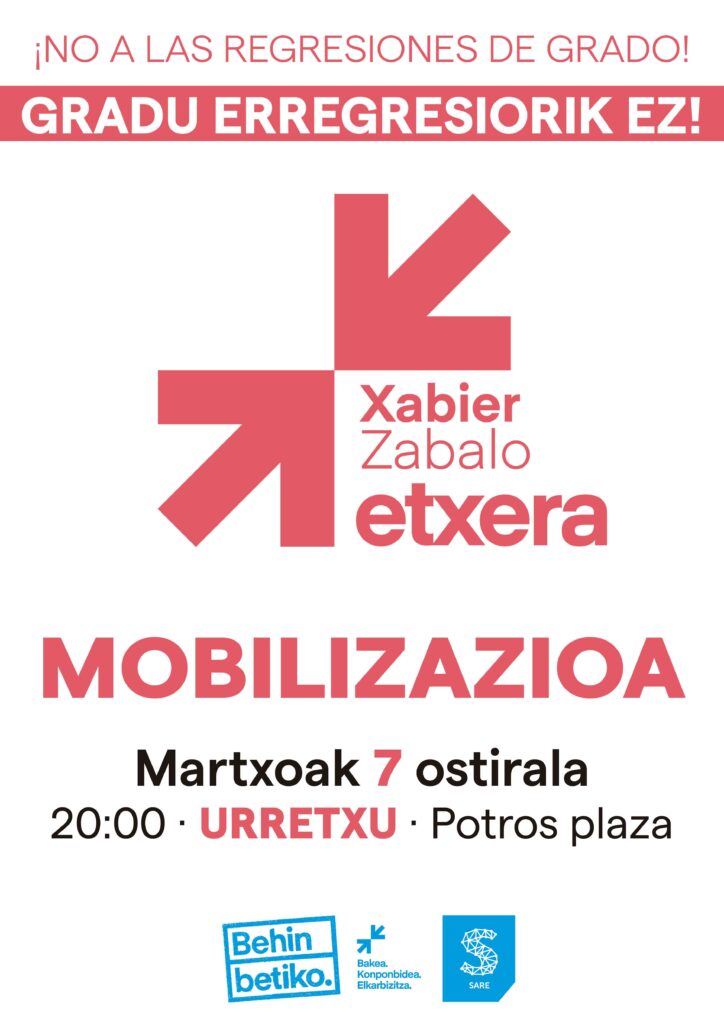 Horregatik, Sarek, datorren ostiralean Martxoaren 7an arratsaldeko 20:00 Urretxuko Potros Plazan antolatu duen mobilizazioan parte hartzera deitzen du gizartea, salbuespenezko erabakiek salbuespenezko egoerak sortzen dituztelako, Xabier eta bere ingurua oso gogorra den prozedura baten aurrean jarri dituelako Audientzia Nazionalak. Gertaturikoa salatzeko ostiralean Urretxun elkartuko gara.